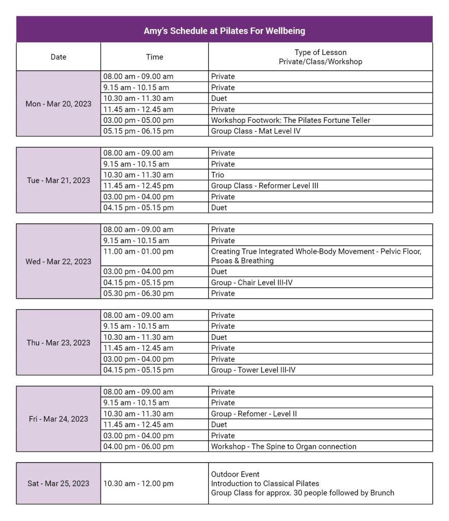 Join us for an exclusive series of sessions and workshops with Amy Taylor Alpers, co-founder of The Pilates Center, Boulder, Colorado.